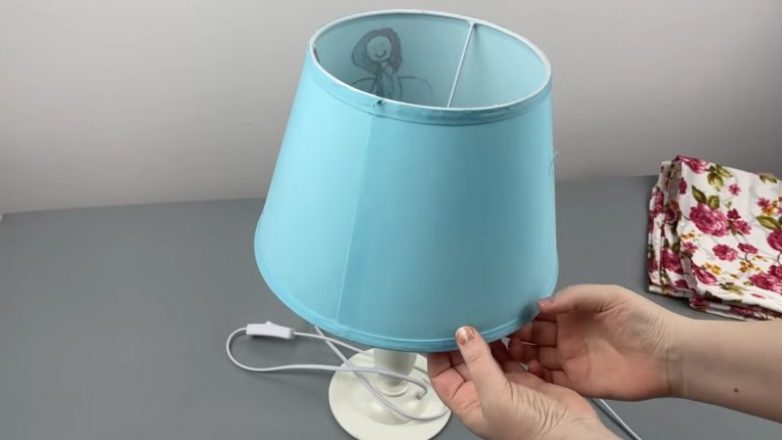 На её торшере пора было менять абажур. Для этого мастерица аккуратно сняла старый материал с колец.