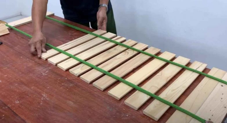 Теперь необходимо будет сделать из ремней и досок два полотна.
