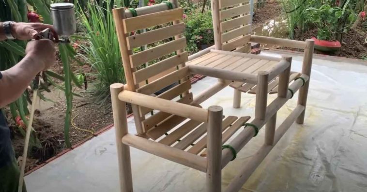 В завершении останется только покрыть садовую скамейку лаком по дереву. Как вариант, если лак вам не нравится — можно просто покрасить.