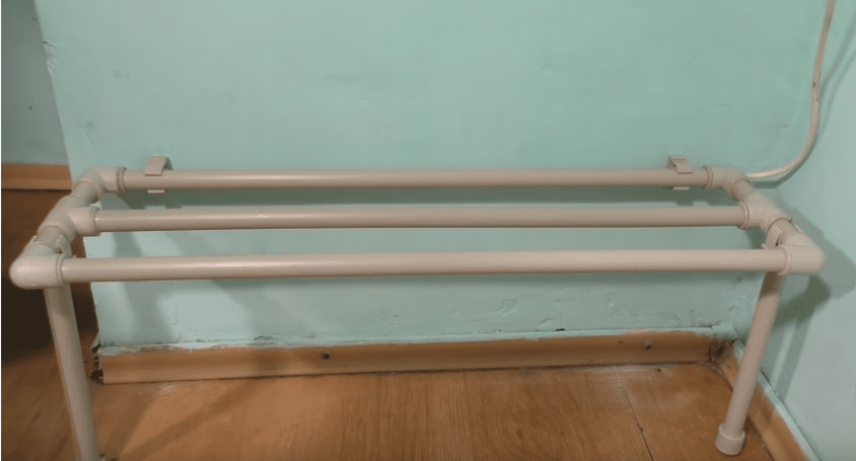 Места соединения можно проклеить универсальным клеем, а можно оставить и без дополнительной фиксации — в таком случае сушилку можно будет разобрать, когда надобность в ней пропадет.