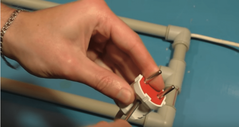 На конец сетевого кабеля прикручиваем вилку, и основная часть сушилки готова, использовать ее можно уже и на этом этапе.