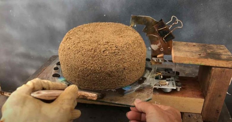 В завершении останется только подождать, пока раствор схватится, аккуратно снять его с платформы, и высыпать изнутри весь песок.