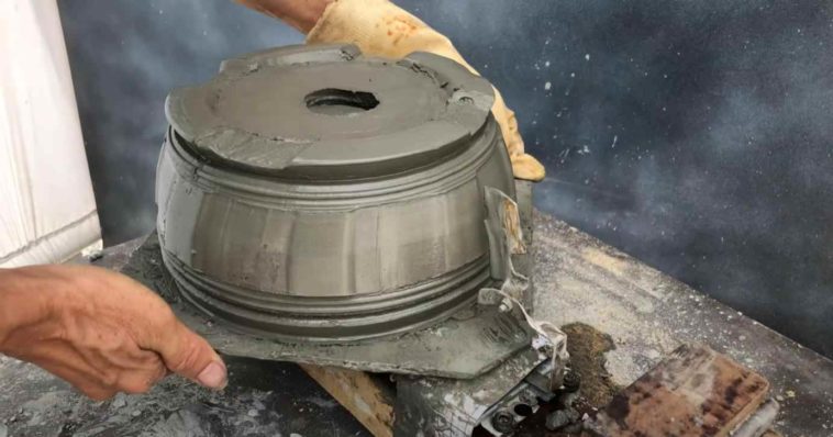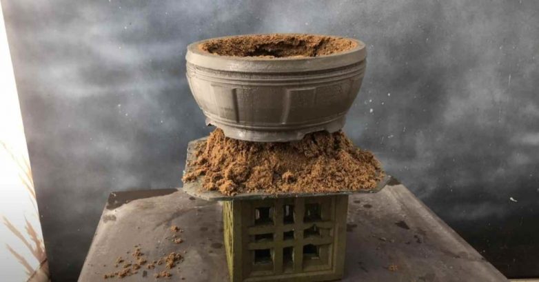 Как сделать цементный горшокСначала на вращающейся платформе необходимо сделать песчаную форму для горшка.