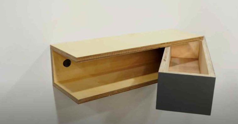 Если вам нужно надежное место для хранения заначки, ключей от машины или важных документов, но при этом вы не хотите, чтобы оно бросалось в глаза, как, например, громоздкий металлический сейф, то, как вариант, можно изготовить своими руками настенную полку с секретным отделением в виде поворотного ящика.