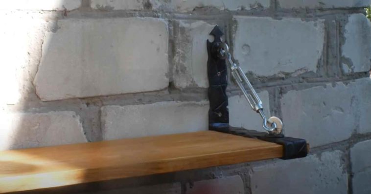 Вставляем доску в отверстия в кронштейнах (дополнительно можно прикрутить ее на саморезы). Потом останется только прикрепить кронштейны к стене.