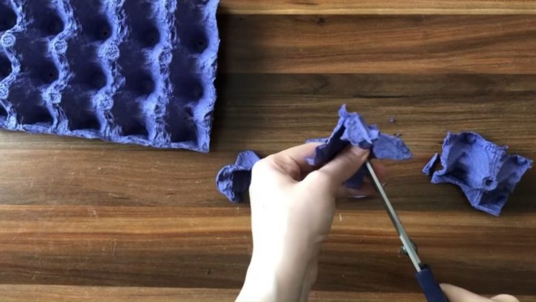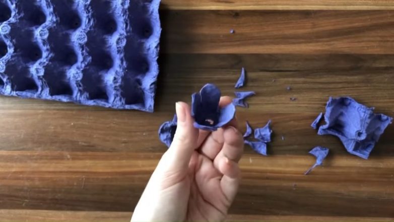Лотки разрежьте на отдельные ячейки. Каждую ячейку обрежьте так, чтобы получился цветок с 4 лепестками.