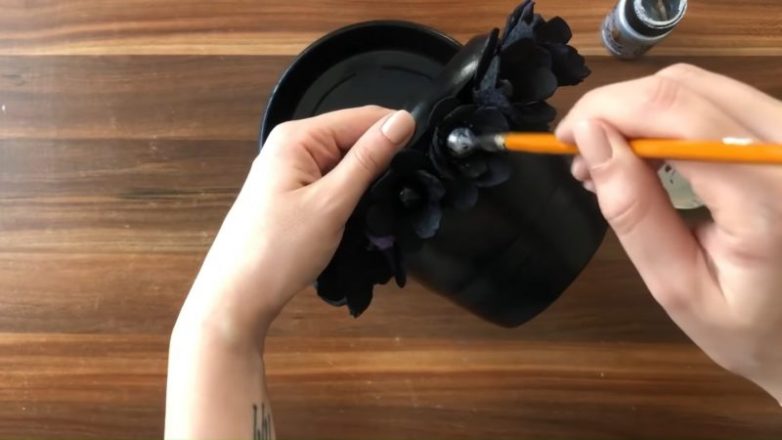 Склейте два лепестка вместе, в центр приклейте бусину. Раскрасьте любым желаемым цветом.