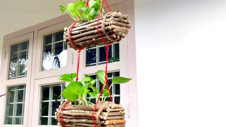 Только посмотрите на эту удивительную идею из обыкновенной пластиковой бутылки и веток! Насколько красивое и оригинальное подвесное кашпо (горшок) получается! А главное, это так просто и быстро.