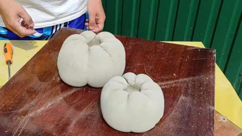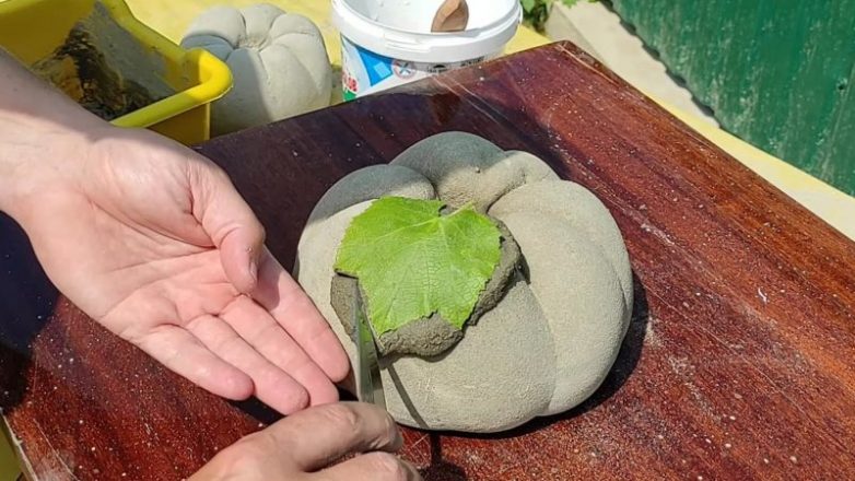 Из цемента дачники уже давно создают удивительный декор для своего участка. Сделайте и вы замечательную и очень реалистичную тыкву с листочками!