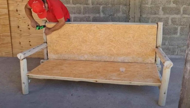 Если вам нравится интерьер, оформленный в деревенском стиле, то диван из бревен и OSB (или фанеры) идеально дополнит его.