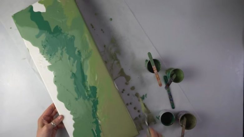Подготовив краску, сделайте следующий трюк, которым пользуются многие художники: просто разлейте краску по картине вертикально.