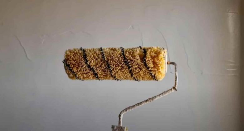 После этого «вооружаемся» малярным валиком, и прокатываем им поверхность стены, формирую фактурную поверхность.