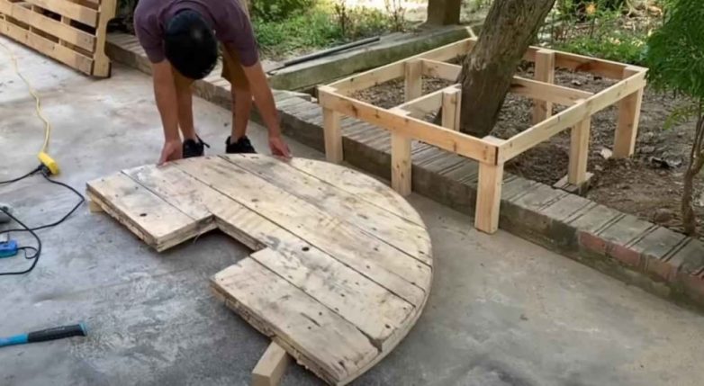 Пошаговый процесс изготовления круглой скамейки со столиком