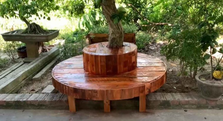Идеальным вариантом будет сделать и установить скамейку вокруг большого дерева в саду, на даче или во дворе частного дома. Хватит места для всей семьи!