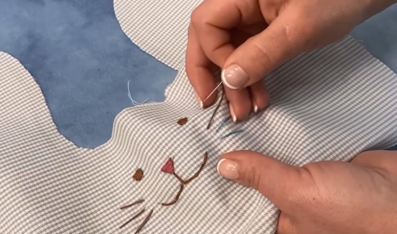 На основной ткани нарисуйте мордочку кролика и вышейте ее.
