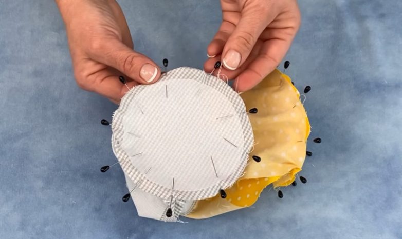 Укрепите ткань флизелином и вшейте получившиеся донышки в заготовку.