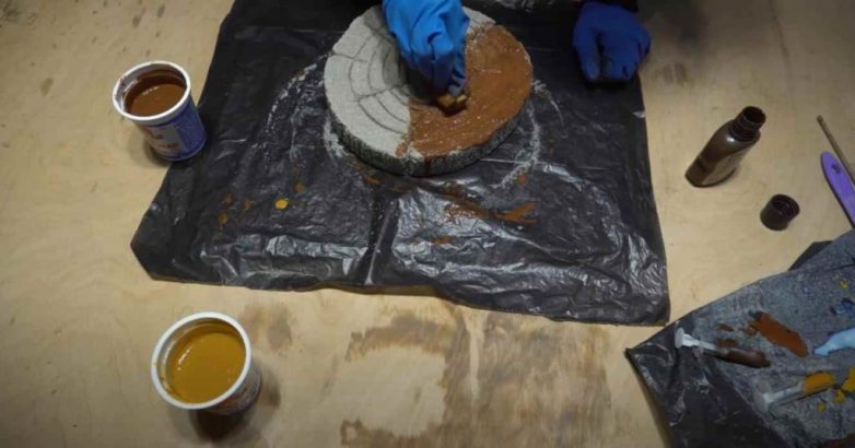 А чтобы плитки смотрелись поинтереснее — верхнюю часть задекорируем под спил дерева. Процесс этот несложный, но творческий.
