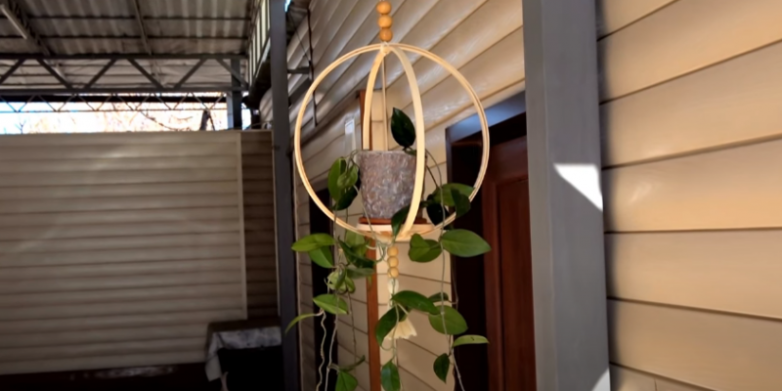 А ниже вы можете посмотреть подробное видео о том, как сделать такой подвесной горшок из пялец своими руками.