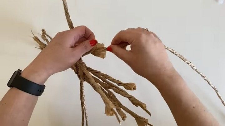 Чтобы сплести корзинку-подставку, нужно нарезать полоски пергаментной бумаги и каждую накрутить на небольшой отрезок проволоки.