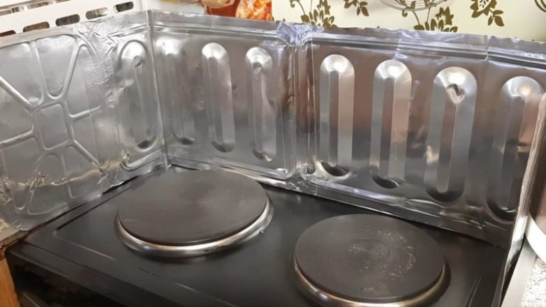 Готовый экран установите на кухне. Теперь спокойно жарьте рыбу и не только и не переживайте, что брызги масла попадут на стену! Экран легко убирается, моется и ставится обратно.