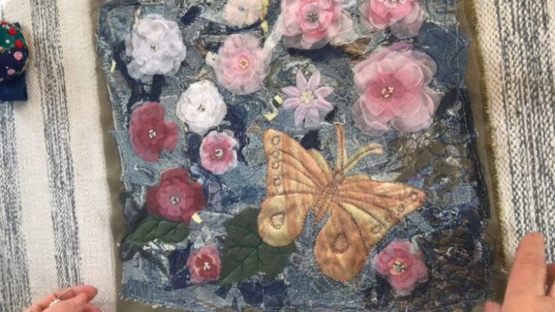 С помощью простой лапки или свободно-ходовой простегать всё полотно с органзой.