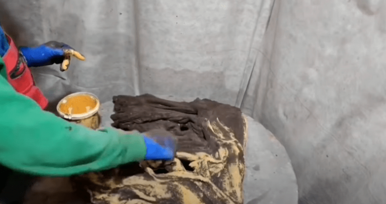 Далее разводим довольно жидкий цементный раствор, хорошо смачиваем в нем ткань и формируем будущую секцию. Оставляем заготовку сохнуть примерно на 2 суток.