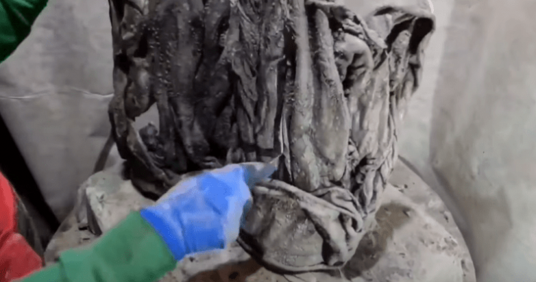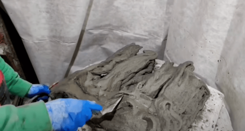 Оставляем заготовку до полного высыхания примерно на 4 дня. Затем счищаем с нее цементную крошку, ненужные элементы и при необходимости зашлифовываем.