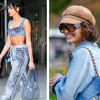 Вденьте одно кольцо на другое, крест-накрест. Теперь возьмите третью, несшитую полоску. Вденьте её через вертикальное кольцо сверху.
