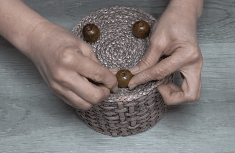 Кашпо готово. Остается поместить в него горшок с цветком.