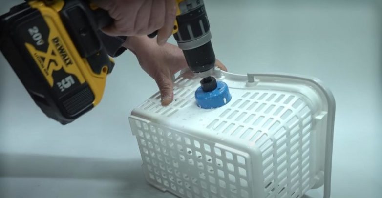 В первой корзинке необходимо будет высверлить отверстие с помощью кольцевой пилы, через которое мышь или крыса смогут проникнуть внутрь мышеловки.