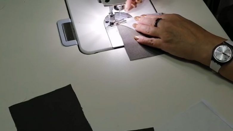Затем загните уголок треугольника вверх, прошейте. Получится интересная деталь (см. фото ниже). Сделайте 4 таких детали.