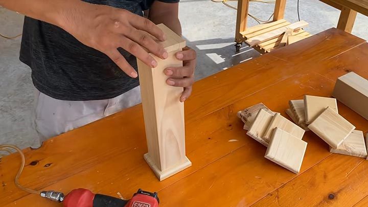 Отдельно из деревянных деталей сделайте ножки для ограждения.