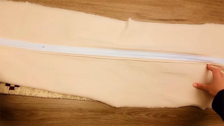 В изнаночную ткань, состоящую из двух кусочков, по центру вшейте молнию.