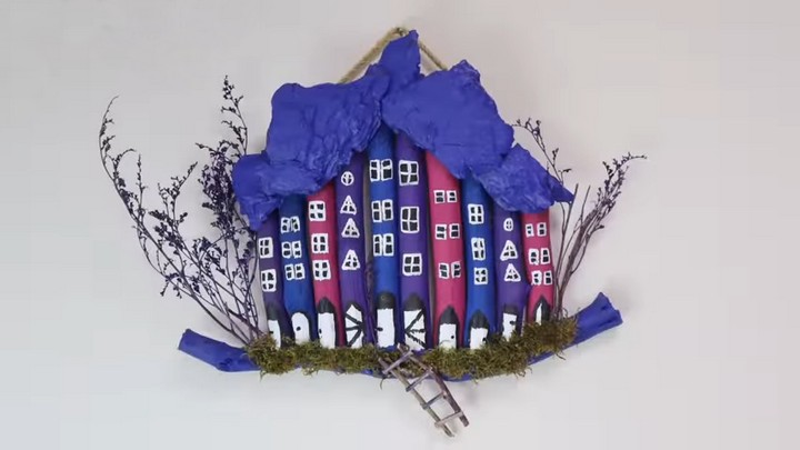 В следующий раз, когда будете прогуливаться в парке или лесу, поднимите несколько веток, соберите чуть-чуть мха и древесной коры и сделайте очаровательный сказочный городок, который будет привлекать всеобщее внимание и здорово оживит любую стену в вашем доме. К этому проекту можно привлечь и детей.