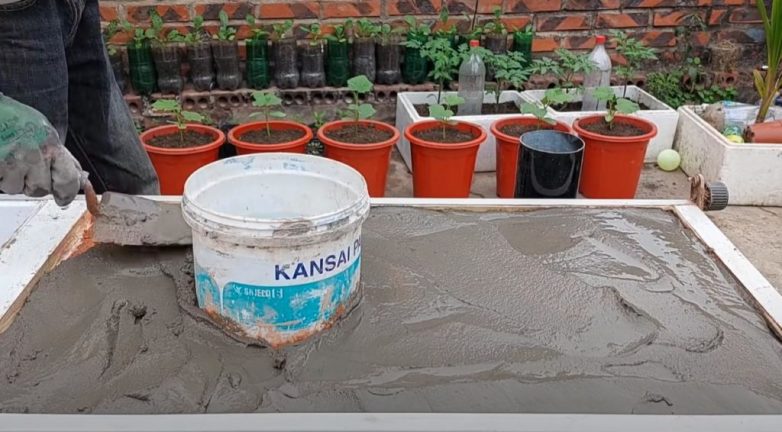 После этого нужно залить верхнюю часть печки сначала глиняным раствором, а затем — цементным.