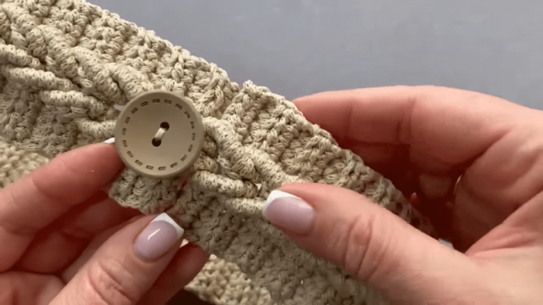 У основания косы пришиваем пуговицу. Ответной частью станет последняя вытянутая петля.