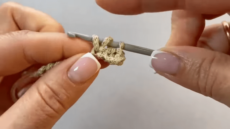 Набираем цепочку из 11 воздушных петель (ВП). Следующий ряд провязываем полустолбиками с накидом (ПСН). Сделав накид, протягиваем рабочую нить через цепочку и закрываем в один прием.