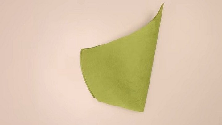 Сложите заготовку пополам и скруглите по краю, чуть сильнее срезав нижний угол.