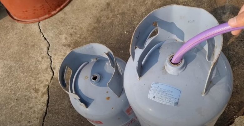 Для изготовления самодельной дровяной печки нам потребуются газовые баллоны из-под пропана объемом 50 л и 27 л.