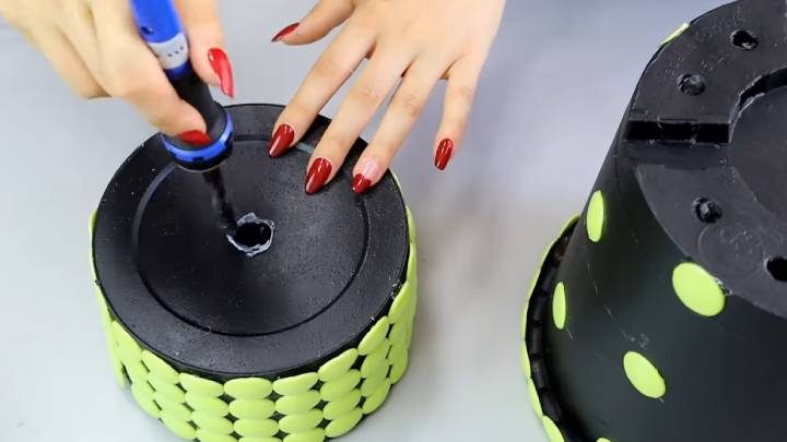 Получился двухярусный горшок для цветов! Однако, верхний ярус можно просто наполнить любым декором.