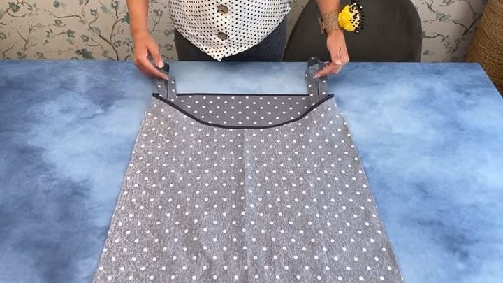 Далее сложите лицом друг к другу основные детали и швом зигзаг сострочите их по боковым срезам. Верхний срез обработайте косой бейкой.