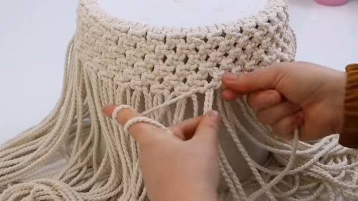 Также для ручек из верёвки сплетите квадратный узор.