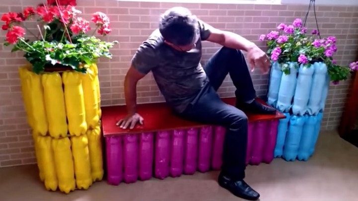 Удобная лавочка для сада из пластиковых бутылок