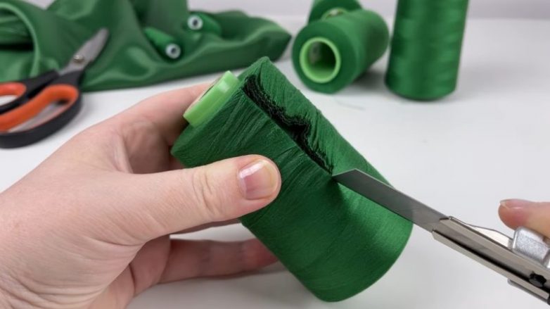 Нитки нужно разрезать очень острым канцелярским ножом, ровно и аккуратно. Затем разобрать на слои — сделать это весьма просто.