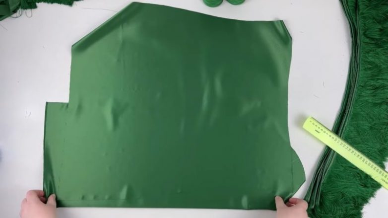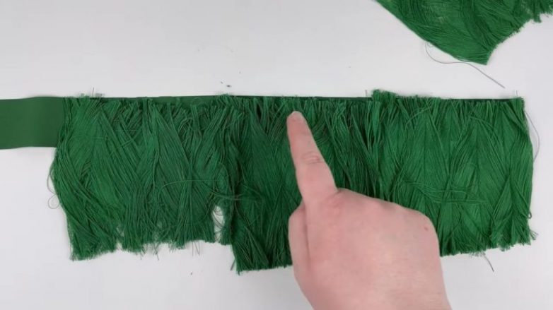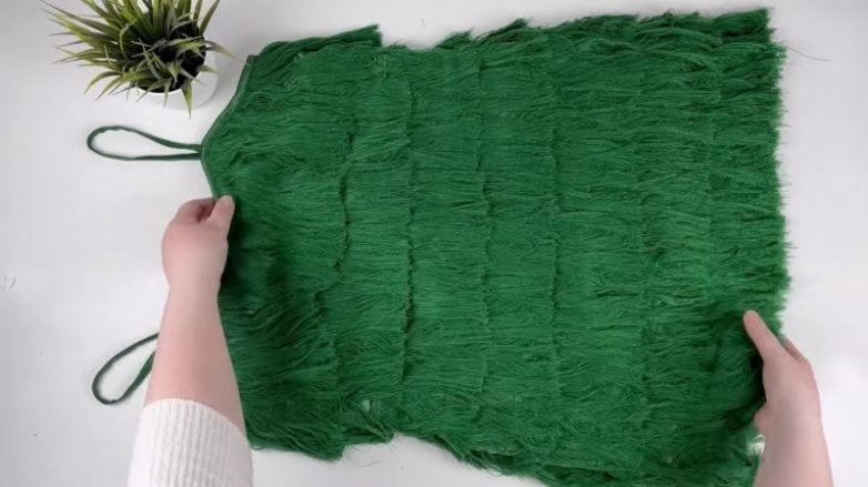 Затем, начиная с низа, ряд за рядом пришить полоски с нитками.