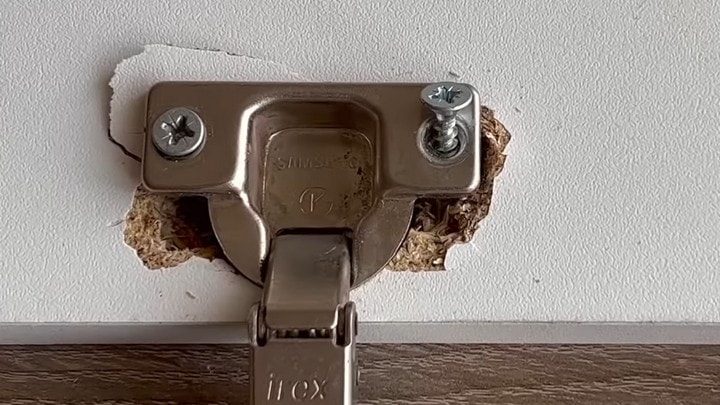 Кто-то облокотился на дверцу или слишком сильно потянул — и вот, петля вылетает вместе с крошками ЛДСП. Поставить её на место, по крайней мере своими силами, кажется невозможным. Однако, не всё так фатально!