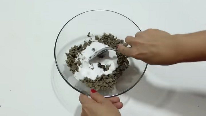 Втулки от туалетной бумаги — это основа массы для лепки. Их необходимо разорвать на клочки, залить кипятком, измельчить блендером, процедить и отжать, завернув в ткань. После этого в измельчённый влажный картон добавляем клей ПВА, немного лимонного сока, растительного масла и крахмала. Получившееся «тесто» тщательно вымешиваем. Если масса получилась очень жёсткой — добавляем ещё ПВА, если хочется больше пластичности — ещё чуть-чуть масла. Далее нужно положить массу в пакет и на 3-4 часа убрать в холодильник.