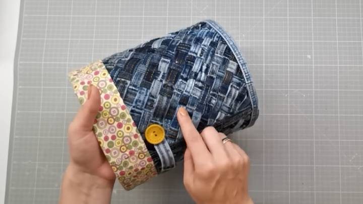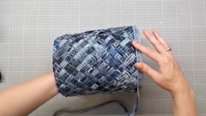 Подробнее о том, как сделать корзину из джинсовых шлевок, смотрите в видео ниже: