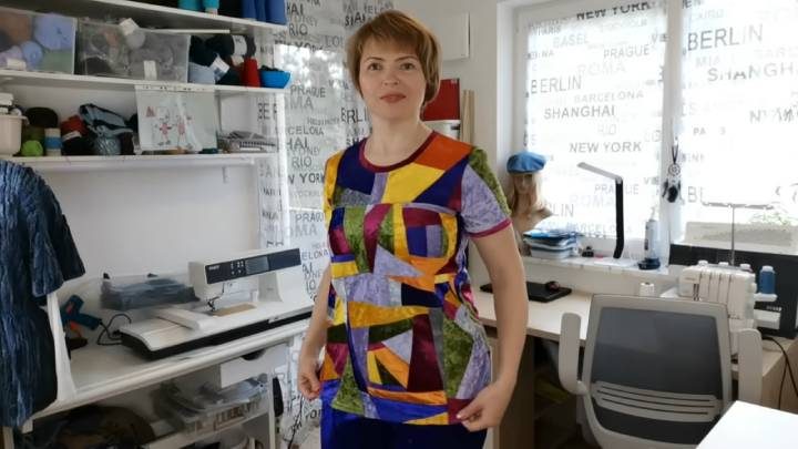 Подробнее о том, как сшить футболку из лоскутков, смотрите в видео ниже: