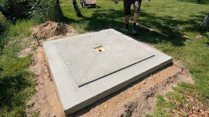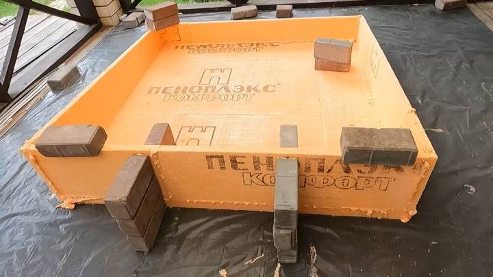 Определите в основании ровный квадрат, прикрепите на саморезы кабель-канал. Дополнительно для прочности конструкции сделайте 2 слоя сетки + клея. Перенесите основание на подготовленное место с ямой.